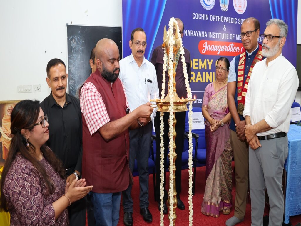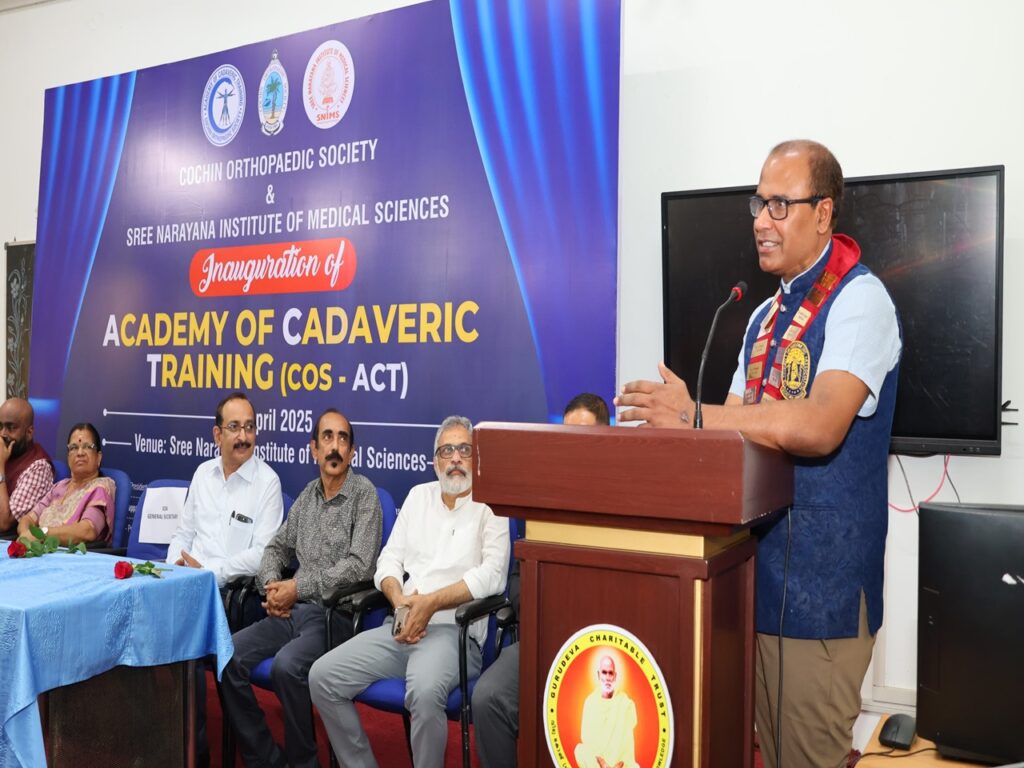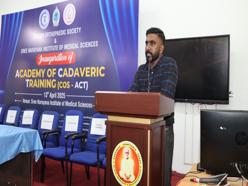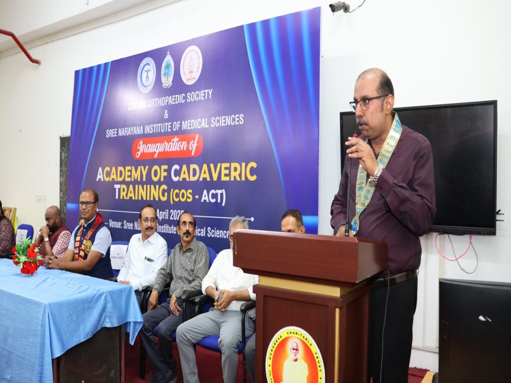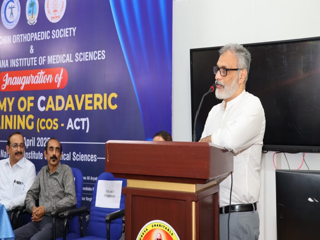 SNIMS achieved another milestone. In collaboration with Cochin Orthopedic society, we started the Academy of Cadaveric training for academic excellence. The academy was inaugurated by Dr.Rajeev Raman, IOA secretary general. COS president Dr.John.T.John welcomed the gathering and COS secretary, Prof and HOD Orthopaedics, Dr. Jiss Joseph Panakkal gave the vote of thanks. GCT Treasurer Mr. Sajeevababu Kombara, Principal Dr. Indirakumari, Medical Superintendent Dr.Anoop Vincent and Dy Supt Dr. Manjusha graced the occasion. Cadaveric training of arthroscopy and arthroplasty spanning 2 days with 25 delegates was part of the program.
