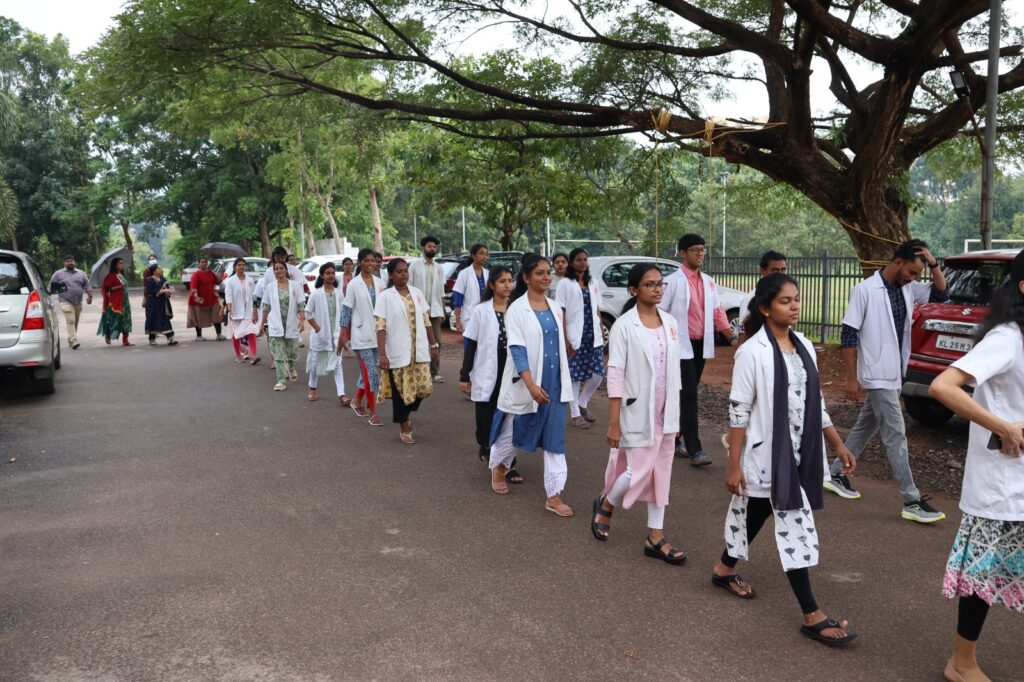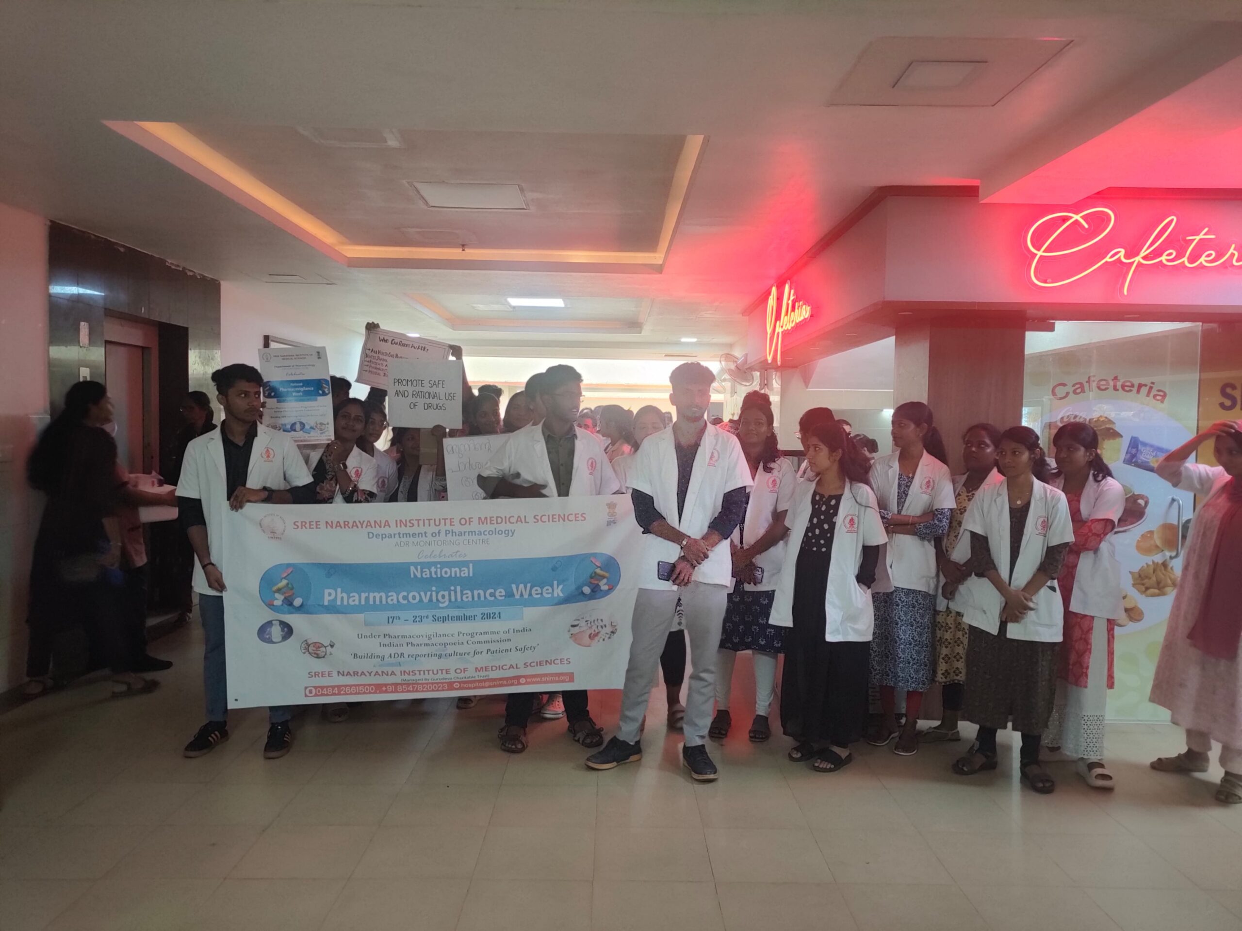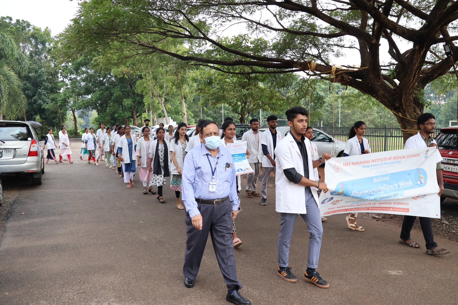 In observance of *Pharmacovigilance Week*, the Department of Pharmacology, in association with Phase II MBBS students, successfully organized a walkathon from SNIMS to Chalakka Junction. The event focused on raising awareness about the crucial role of Adverse Drug Reaction (ADR) reporting in ensuring patient safety, with a special emphasis on patient-initiated reporting